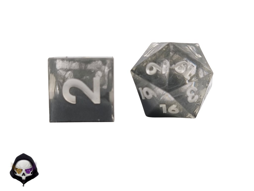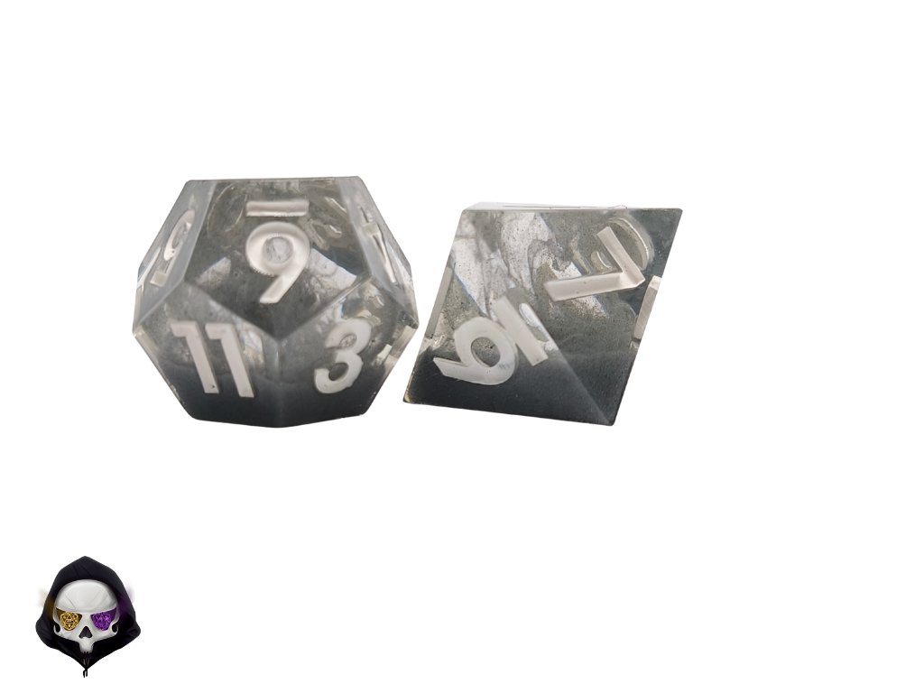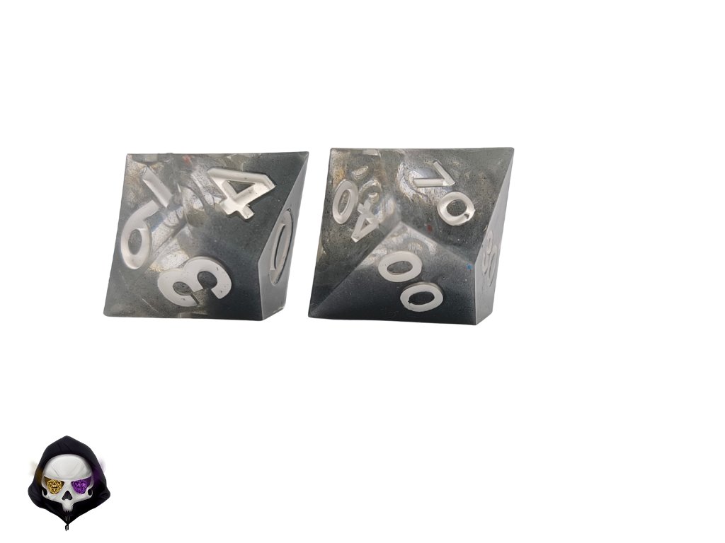 Tato unikátní sada sedmi polyhedrálních kostek (D4, D6, D8, D10, D%, D12, D20) je ručně vyráběná z pryskyřice a každá kostka je originál. Díky ostrým hranám a jedinečným prvkům přináší do vaší hry nejen funkčnost, ale i estetický zážitek. Vzhledem k ruční výrobě mohou jednotlivé kostky vykazovat drobné kosmetické vady, jako jsou bublinky nebo rýhy, což však nijak neovlivňuje jejich herní vlastnosti.
