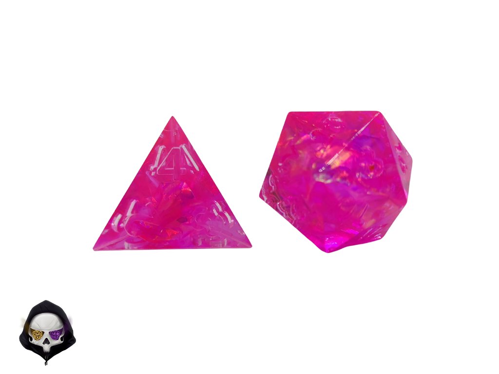 Tato unikátní sada sedmi polyhedrálních kostek (D4, D6, D8, D10, D%, D12, D20) je ručně vyráběná z pryskyřice a každá kostka je originál. Díky ostrým hranám a jedinečným prvkům přináší do vaší hry nejen funkčnost, ale i estetický zážitek. Vzhledem k ruční výrobě mohou jednotlivé kostky vykazovat drobné kosmetické vady, jako jsou bublinky nebo rýhy, což však nijak neovlivňuje jejich herní vlastnosti.