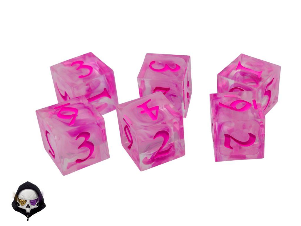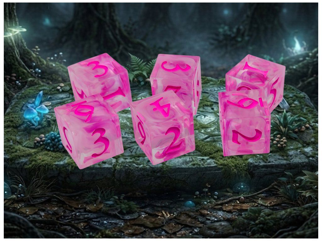 Ručně vyráběná sada šesti šestistěnných kostek (6D6). Ideální pro DnD, Dračí hlídku, Warhammer i další deskové hry.