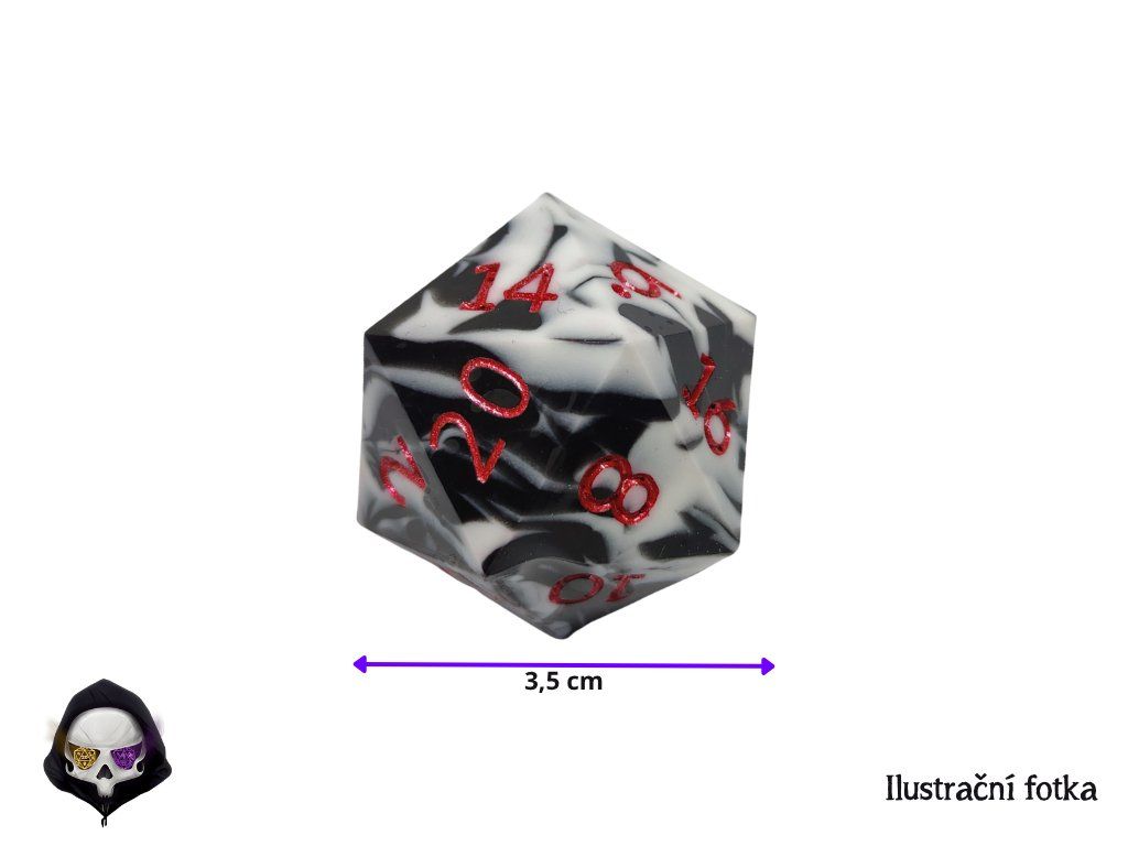 Obří dvacetistěnná kostka o velikosti 3,5 cm. Efektní D20 pro DnD, dekoraci nebo epické hody.
