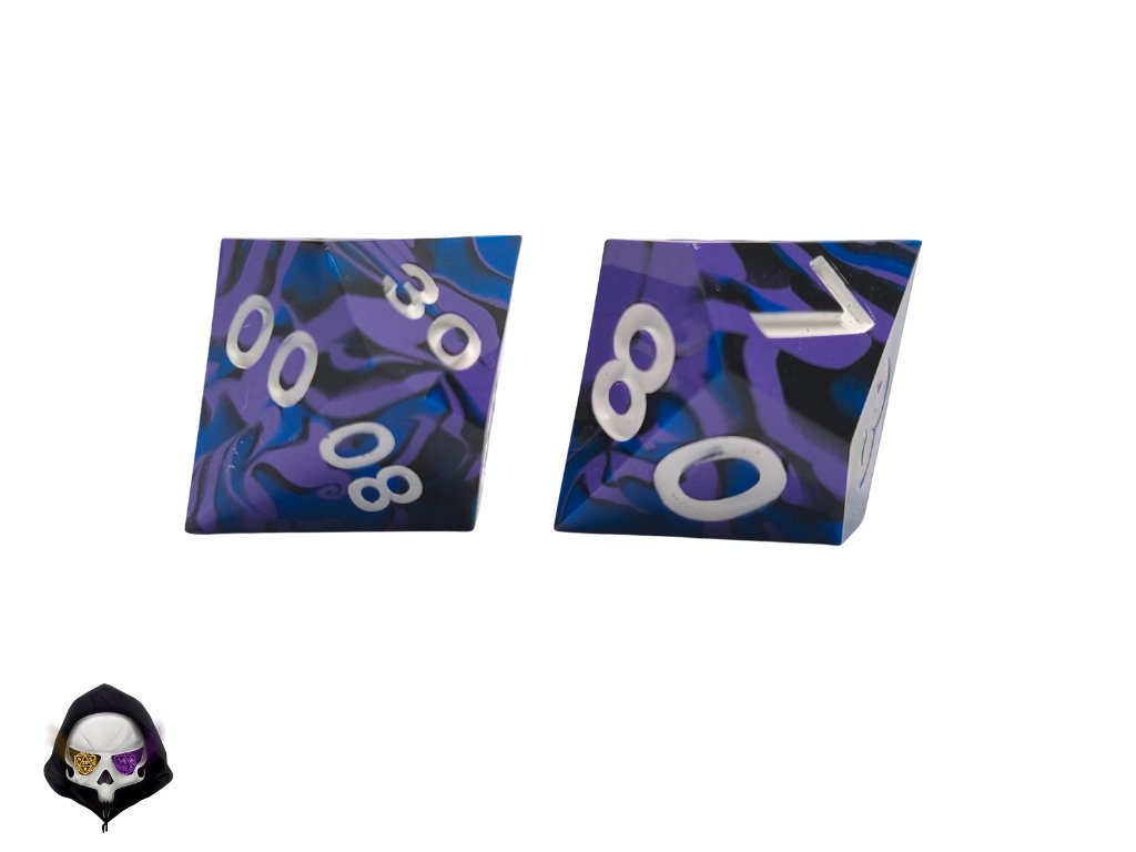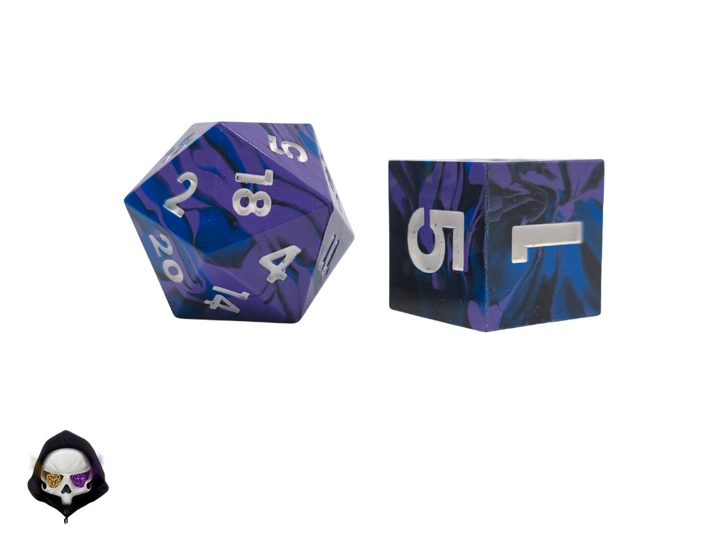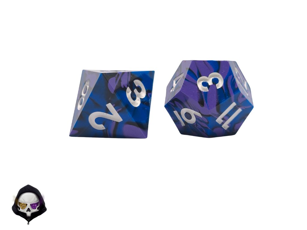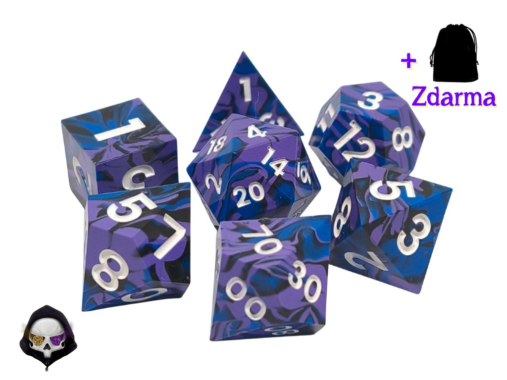 Tato unikátní sada sedmi polyhedrálních kostek (D4, D6, D8, D10, D%, D12, D20) je ručně vyráběná z pryskyřice a každá kostka je originál. Díky ostrým hranám a jedinečným prvkům přináší do vaší hry nejen funkčnost, ale i estetický zážitek. Vzhledem k ruční výrobě mohou jednotlivé kostky vykazovat drobné kosmetické vady, jako jsou bublinky nebo rýhy, což však nijak neovlivňuje jejich herní vlastnosti.