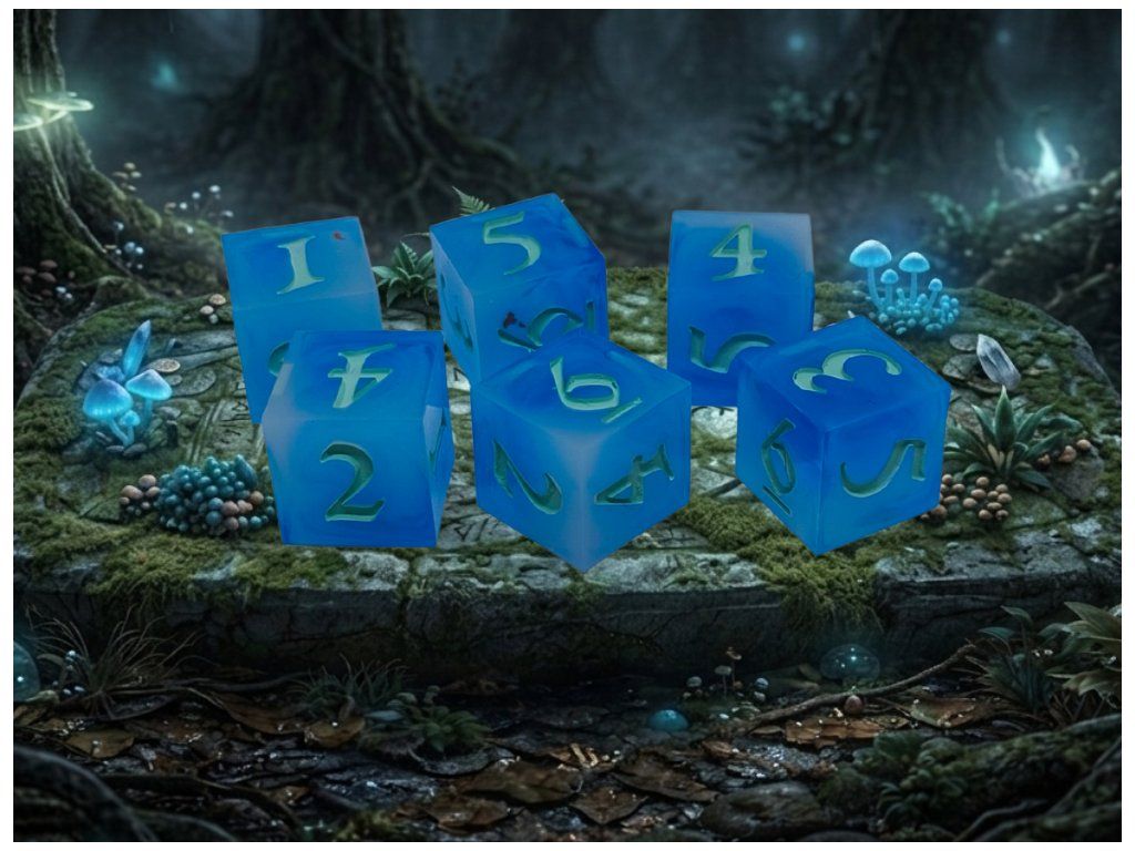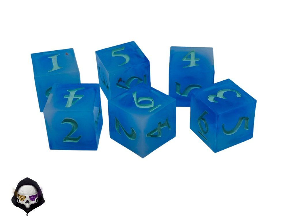Ručně vyráběná sada šesti šestistěnných kostek (6D6). Ideální pro DnD, Dračí hlídku, Warhammer i další deskové hry.