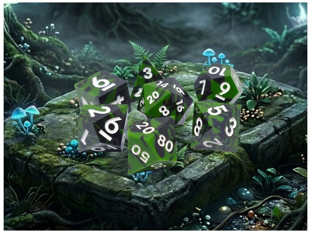 Objevte sadu kostek pro DnD a další stolní RPG. Perfektní pro vaše dobrodružství, kouzelnou atmosféru hry a jako stylový doplněk herní výbavy.