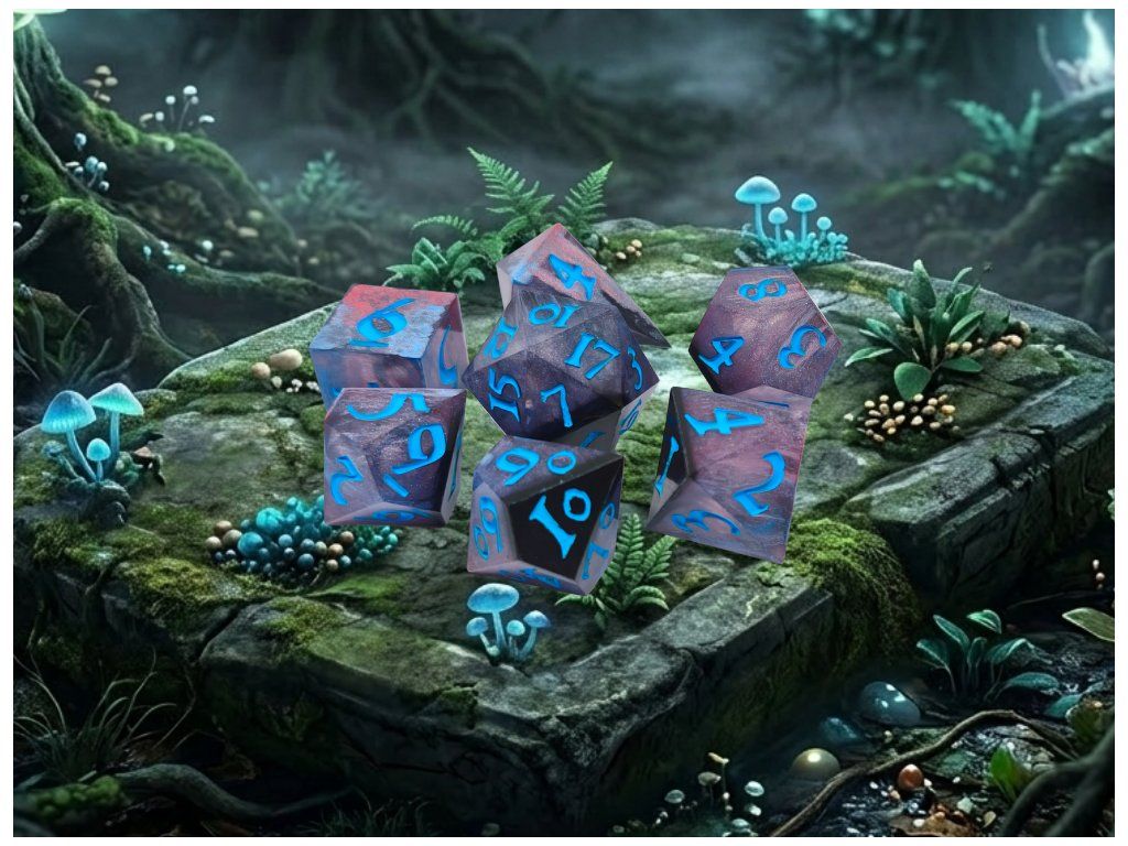 Objevte sadu kostek pro DnD a další stolní RPG. Perfektní pro vaše dobrodružství, kouzelnou atmosféru hry a jako stylový doplněk herní výbavy.